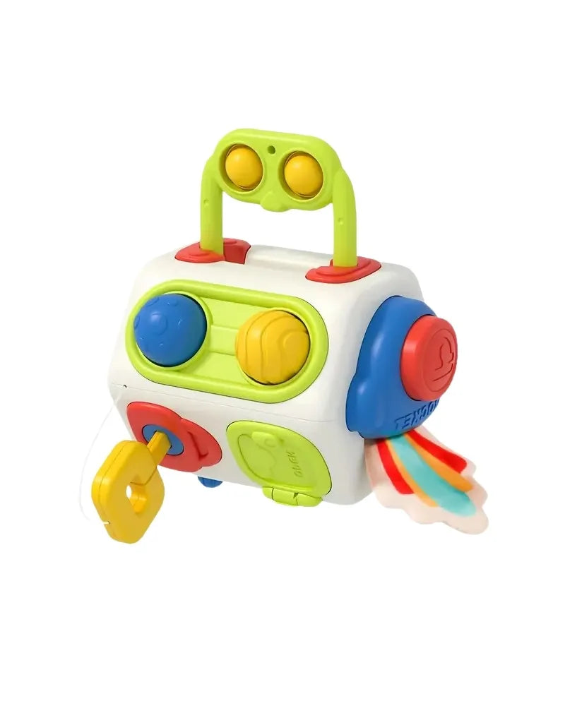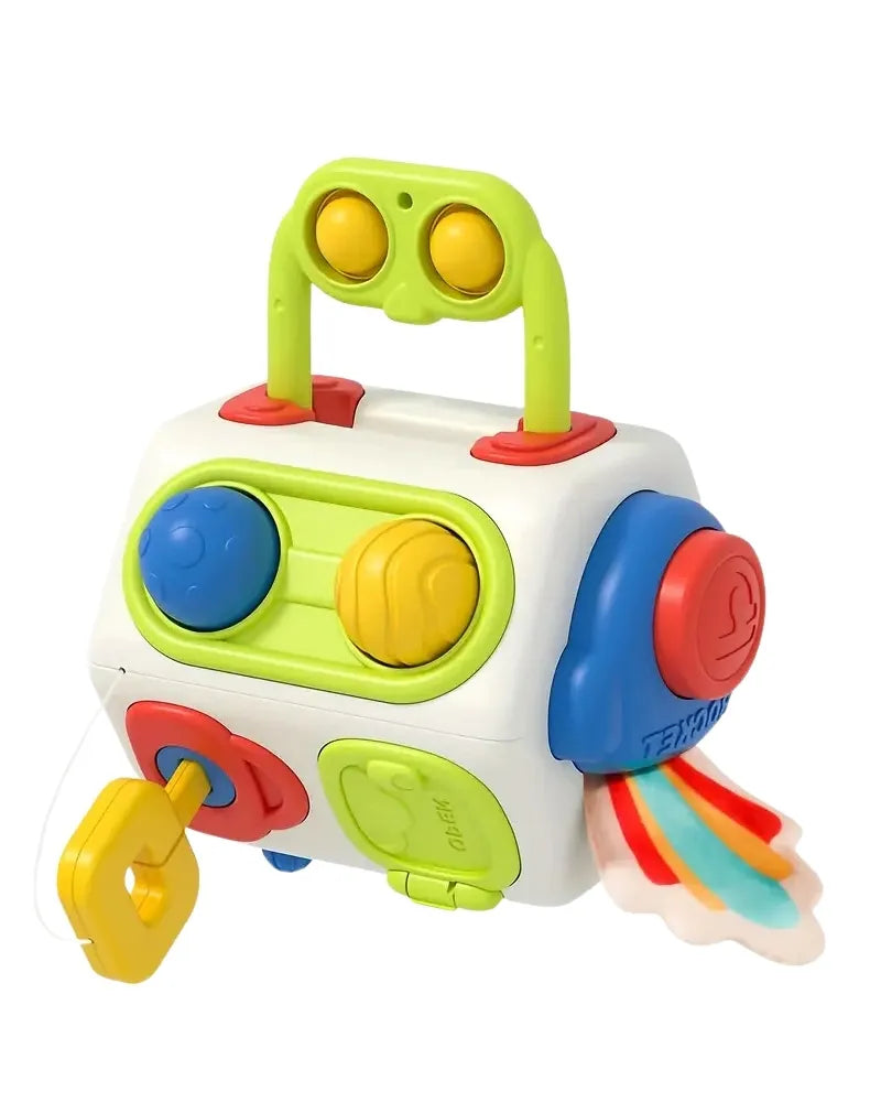 CuboFun est un cube d’activités interactif pensé pour éveiller les tout-petits de façon ludique et éducative. Chaque face propose une manipulation différente, avec des boutons à tourner, des clés à insérer et des éléments à tirer, parfait pour stimuler la curiosité, la motricité fine et la compréhension du lien cause-effet. Coloré, robuste et facile à prendre en main, il accompagne votre enfant dans ses premières découvertes, à la maison comme en déplacement.