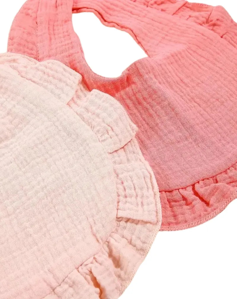 The Floral Softness bib set adds a touch of refinement and tenderness to baby's mealtimes. Available in pretty shades of pale pink and beige, these bibs, adorned with decorative ruffles, bring an elegant and feminine touch to any outfit, while remaining perfectly suitable for everyday use.